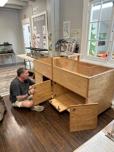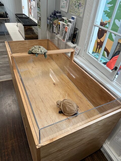 Our turtles are receiving VIP treatment with two incredible enclosures built by volunteer Chuck Burdick, and funded by William Chester through our BASH Paddle Raise – THANK YOU BOTH SO MUCH! The turtles’ indoor enclosure will be their primary residence, with the outdoor enclosure functioning as an enrichment space when the weather is warm enough. The outdoor space will provide vital UVB exposure, interaction with live plants, and a simulation of their natural habitat. Our turtles will only be outside when it is at least 70 degrees outside and a sign will be posted to indicate where you can find them!