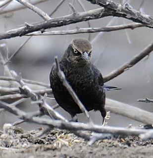 Certainly, the main highlight of the morning was getting to see a female Rusty Blackbird foraging among the small rounded boulders along the edge of Clear Creek. Rusties are the least well-known North American blackbirds, breeding in wet subarctic taiga forests along bogs, muskeg swamps, and beaver ponds, and wintering in the eastern United States south of the Great Lakes and occurring rarely in Colorado. They get their name from their fall plumage when their dark feathers are edged with a rusty brown color. Over the past forty years for uncertain reasons their numbers have declined by about 90%. For us to get to see one of these rarities was a definite treat.