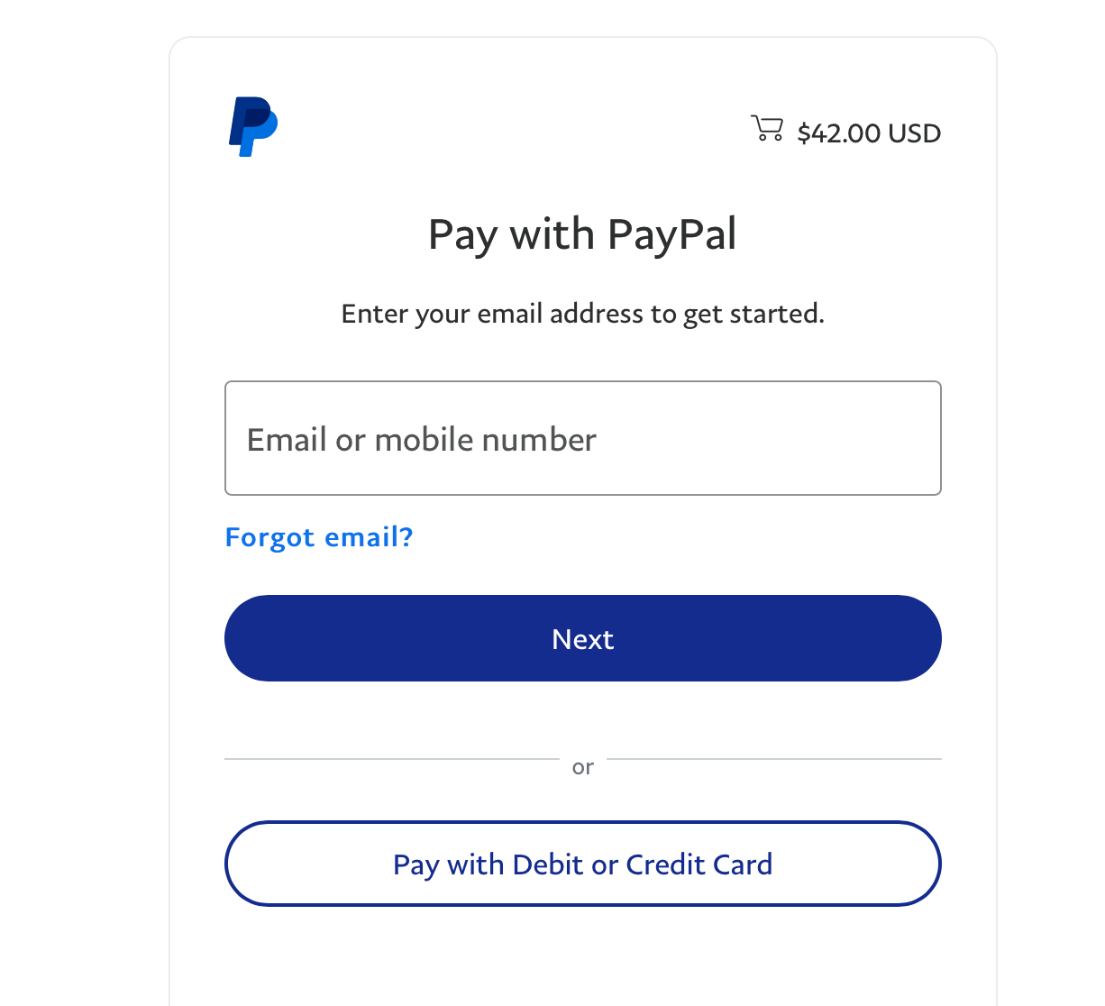 1. Select Pay with Debit or Credit Card (you don’t need to add an email YET)
